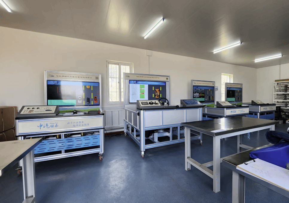 实训课程为训练——电学基础与高压安全实训、新能源汽车装配工艺实训、 新能源汽车电气CAD实训、智能网联汽车汽车职业等级认证实训、智能网联整车 综合测试。